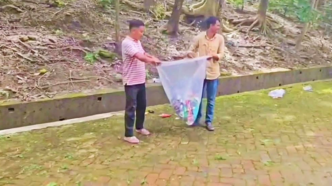 শনিবার (২৭ সেপ্টেম্বর) সকালে জেলার অন্যতম পর্যটন কেন্দ্র মেঘলা পর্যটন কেন্দ্রে ‘সিঙ্গেল ইউজ প্লাস্টিক অপসারণ অভিযান’-এর উদ্বোধন করা হয়। উদ্বোধনের আগে ধারণ করা একটি ভিডিওতে দেখা যায়, কয়েকজন ব্যক্তি তাদের পলিথিনের ব্যাগ থেকে খালি প্লাস্টিকের বোতল, চিপসের প্যাকেটসহ বিভিন্ন প্লাস্টিক সামগ্রী চারপাশে ছিটিয়ে দিচ্ছেন। এরপর পরিচ্ছন্নতা কর্মী ও স্বেচ্ছাসেবীরা সেই ফেলে দেওয়া প্লাস্টিক সামগ্রী তুলে নিচ্ছেন।