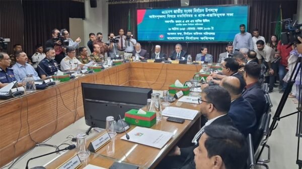 প্রধান নির্বাচন কমিশনার (সিইসি) এ এম এম নাসির উদ্দীনের সভাপতিত্বে সভায় আইনশৃঙ্খলা রক্ষাকারী বিভিন্ন সংস্থার ঊর্ধ্বতন কর্মকর্তারা যোগ দিয়েছেন। চার নির্বাচন কমিশনার এবং ইসি’র জ্যেষ্ঠ সচিব আখতার আহমেদ সভায় উপস্থিত আছেন।