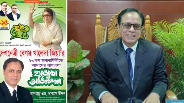 বিএনপি চেয়ারপার্সন বেগম খালেদা জিয়ার ৮০তম জন্মদিন উপলক্ষে দেশবাসীকে শুভেচ্ছা জানিয়েছেন চাঁদপুরের ফরিদগঞ্জের কৃতি সন্তান
