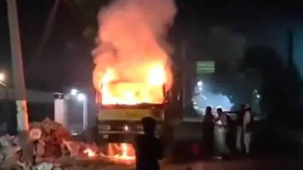 ময়মনসিংহে মধ্যরাতে পার্কিং করা কাভার্ড ভ্যানে আগুন