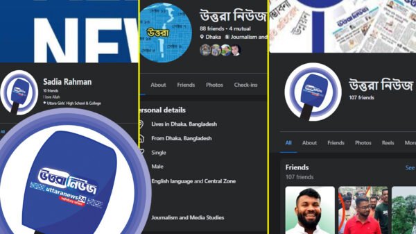সামাজিক যোগাযোগ মাধ্যমে জাতীয় ‘দৈনিক উত্তরা নিউজ’-এর নাম ও লোগো ব্যবহার করে একাধিক ভুয়া ফেসবুক আইডি থেকে বিভ্রান্তিকর তথ্য ছড়ানো হয়েছে। এ ঘটনায় উত্তরা পশ্চিম থানায় সাধারণ ডায়েরি দায়ের করেছে উত্তরা নিউজ কর্তৃপক্ষ। কর্তৃপক্ষ জানায়,  জিডিতে সে সকল ভুয়া আইডি বিস্তারিত...